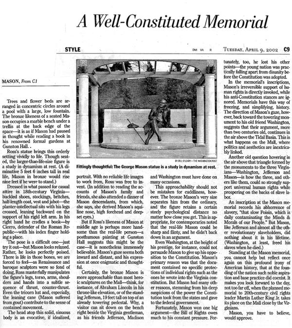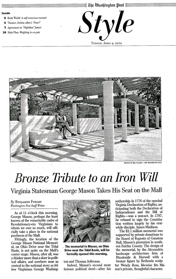 You are here: George Mason Memorial > Washington Post articles on George Mason Memorial